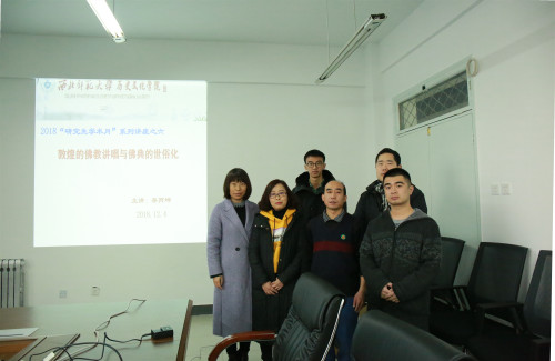 2018年12月4日上午,suncitygroup太阳新城硕士生导师秦丙坤副教授在7号楼312会议室作了题为“敦煌的佛教讲唱与佛典的世俗化”的学术报告。报告会由僧海霞老师主持,刘再聪副院长、张嵘老师及研究生70多人参加了报告会。