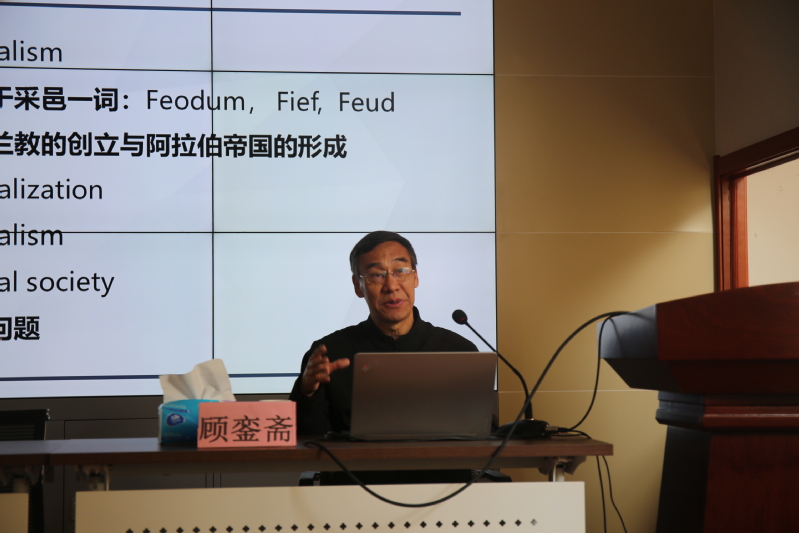 顾銮斋老师从“封建主义”概念的起源、学术史、奴隶社会的概念、封建社会的概念及相关问题等五个方面展开论述。首先,顾老师追溯了西方学术语境中“Feudalism”起源。其次,顾老师重点介绍了关于封建主义这一概念的学术史。顾老师的讲解中西结合,对从文艺复兴至21世纪之间中西方学界关于封建主义的讨论、辨析、看法等做了清晰的阐释;对由中西对译“封建主义”(Feudalism)这一概念进而产生的学术误解作了溯源和剖析;对一些产生过重大影响的观点予以评述。顾老师从奴隶社会的概念出发,从对比的角度引出封建社会的概念。在“封建社会的概念”这部分讲述中,顾老师介绍了中国封建一词的起源、“Feudalism”和“封建主义”的对译、五种生产方式理论传入的影响、中国封建社会的长期延续及中西封建的差异等问题。最后,顾老师讲述了他对一些相关问题的看法,认为需要重新考虑“专制主义中央集权封建国家”和“大土地、小生产”的提法,并评述了中国学者的“自我东方化”问题。