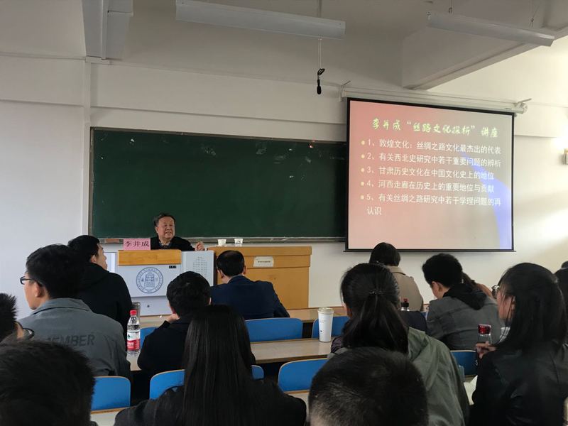 2019年10月16日,西北师范大学敦煌学研究所所长、suncitygroup太阳新城研究员、博士生导师李并成在教学七号楼305教室作题为《河西走廊在历史上的重要地位与贡献》专题讲座。讲座由秦丙坤副教授主持,学院教师僧海霞、马军霞、张国源、鲁宸伊及本科生、研究生、博士生等120余人参加了讲座。