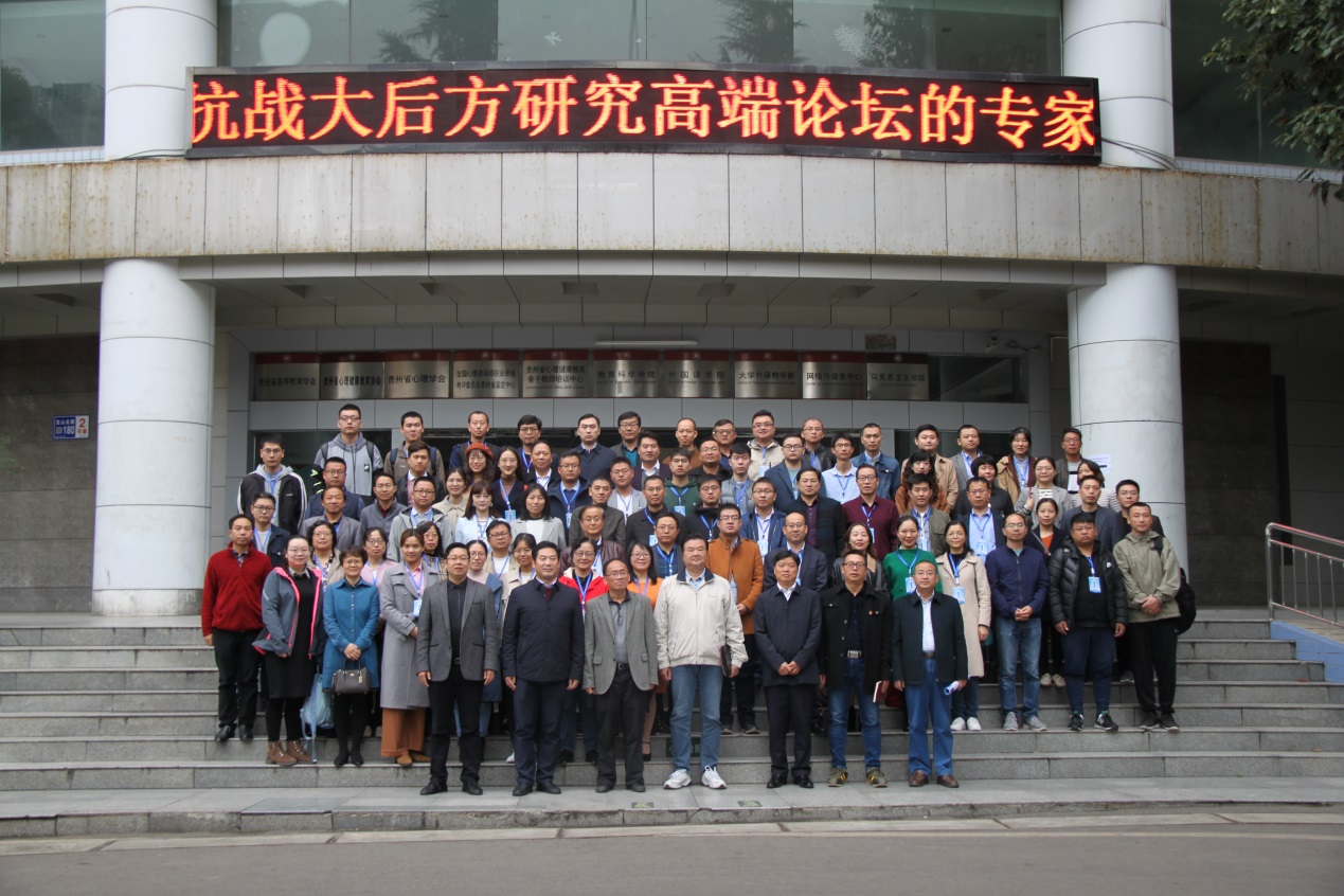 10月15日至17日,“第四届中国抗战大后方研究高端论坛”在贵州师范大学隆重召开。论坛由贵州师范大学、西南大学、《抗日战争研究》编辑部联合主办,贵州师范大学马克思主义学院、西南大学中国抗战大后方研究协同创新中心承办。来自中国社会科学院、军事科学院、中国人民大学、复旦大学、浙江大学、华东师范大学、华中师范大学、中山大学、首都师范大学、西北师范大学、湖南师范大学、山东师范大学、上海师范大学、新疆大学等60余所高校、党校和科研院所的90余名专家学者参加了此次学术研讨会。我院尚季芳老师、侯培和老师和博士生李海群、硕士生张少凯参加了此次会议。
