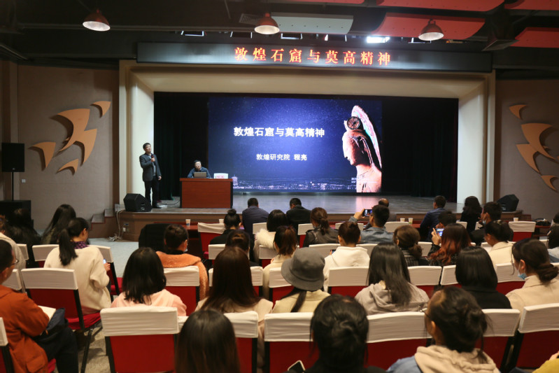 讲座中,程亮副院长引经据典、图文并茂,向师生形象生动讲述了敦煌文化,并在互动环节解答了同学们的问题。讲座最后,何玉红院长对讲座做了总结,并鼓励师生们多去敦煌莫高窟考察、学习。