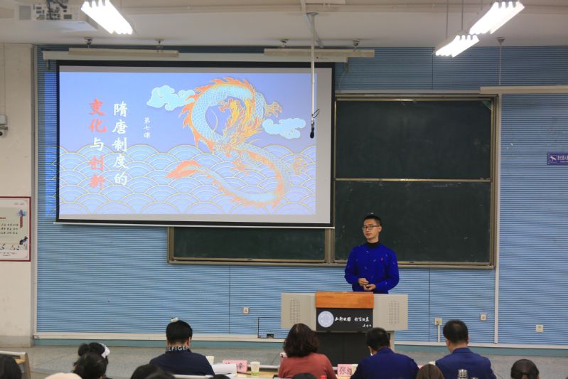 首先,9位同学依据统编版高中教材进行内容选择,每人15分钟的试讲时间。王泽斌与周玉芳两位同学选取了第5课《三国两晋南北朝的政治更迭与民族交融》一课中的部分内容,都将重点放在了朝代的更迭上进行阐述;马晓朵与武遥两位同学选择了第6课《从盛唐盛世到五代十国》一课,主要讲授了隋朝的灭亡的原因;王曜、蔡朗新以及孙嘉迪三位同学选择了第7课《隋唐制度的变化与创新》中的选官制度这一部分,对九品中正制取代察举制的原因做了说明,对介绍了九品中正制的相关内容;最后的张雪洁以及李昕两位同学选择的是第8课《三国至隋唐的文化》中的内容,对教材中的第一部分内容进行介绍,介绍了这个时期的文化成果和成就。
