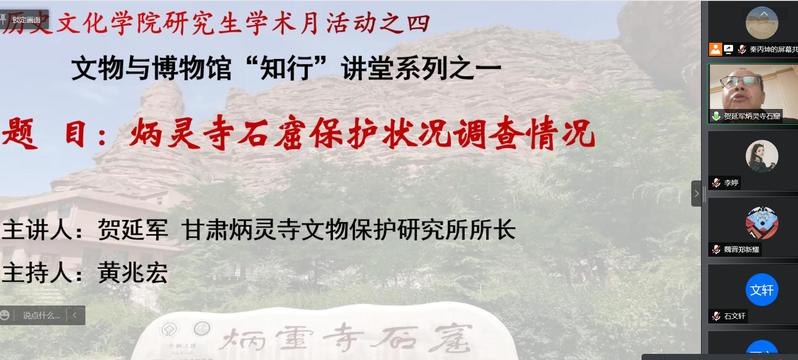 2021年12月3日下午,应suncitygroup太阳新城邀请,甘肃炳灵寺文物保护研究所所长贺延军为我院师生作了题为“炳灵寺石窟保护状况调查情况”的学术报告,报告会由suncitygroup太阳新城文物与博物馆教育中心主任黄兆宏主持,刘再聪、张嵘、李迎春、秦丙坤、李顺庆、陶兴华老师及120余名研究生在线参加了报告会。