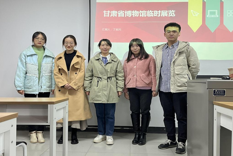 本场汇报由博物馆实习的四个实习小组进行。甘肃省博物馆实习小组对实习期间参与的各个临时展览进行了介绍,并对小组成员参与制作标本、文物修复等其他方面的工作成果做了分享;高台县博物馆实习小组将实习期间参与的展陈布置、社教活动、展厅讲解等工作做了介绍,并对整个小组在实习过程中的收获做了分享;嘉峪关长城博物馆实习小组对嘉峪关长城博物馆进行了介绍,并对实习小组在实习期间参与的社教活动、游客登记、文物清洗等工作做了分享。炳灵寺石窟实习小组对炳灵寺石窟进行了介绍,并从石窟讲解工作出发,对小组成员在讲解过程中遇到的各种各样的问题以及如何应对这些问题做了分享。