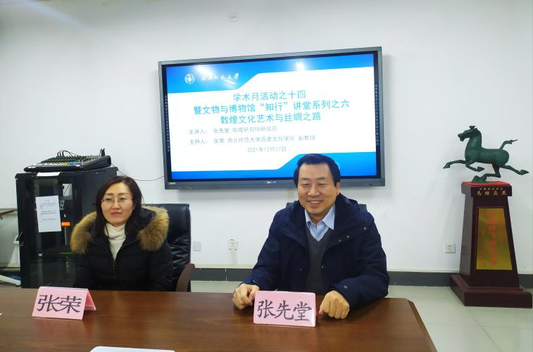 2021年12月17日下午2:30,应suncitygroup太阳新城邀请,敦煌研究院张先堂研究员在田家炳教育书院312会议室作了题为《敦煌文化艺术与丝绸之路》的学术报告,报告会由我院张荣老师主持。参会老师有党庆兰、潘春辉、连菊霞以及70余名研究生参加了此次学术报告。