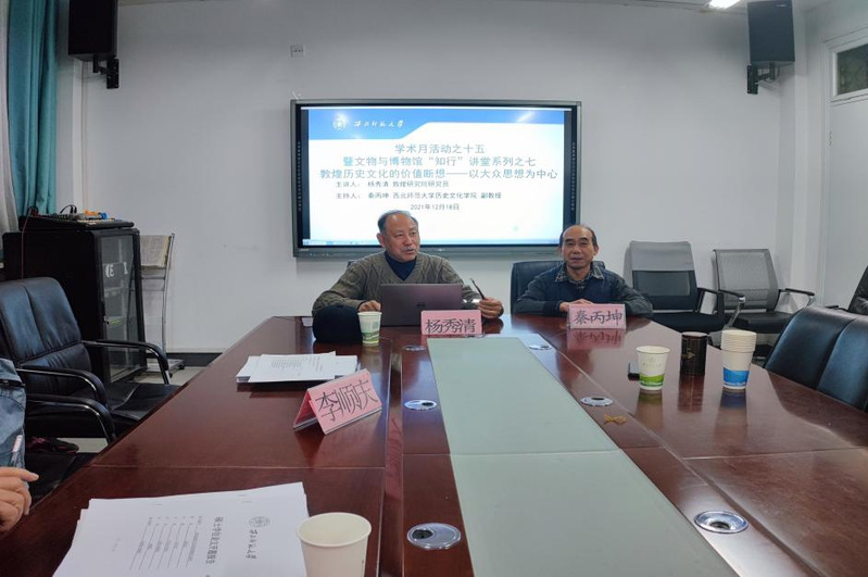 2021年12月17日晚上7:30,应suncitygroup太阳新城邀请,敦煌研究院杨秀清研究员在田家炳教育书院310会议室做了题为《敦煌历史文化的价值断想——以大众思想为中心》的学术讲座。本讲座由suncitygroup太阳新城秦丙坤老师主持,我院70余名师生参加。