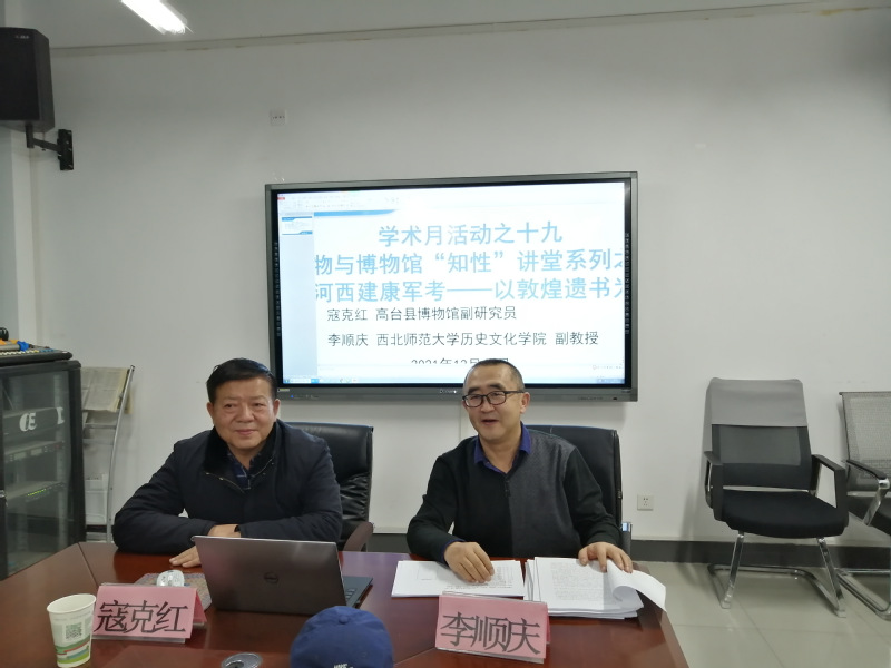 2021年12月27日晚上7:30,原高台县文物局局长寇克红应suncitygroup太阳新城的邀请,在田家炳教育书院308会议室做了题为《唐代河西建康军考——以敦煌遗书为中心》的学术报告,此次报告会由李顺庆老师主持,我院李晓英、黄兆宏、张连银、秦丙坤老师及80余名研究生参加。