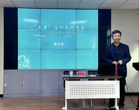 2023年10月30日下午,应suncitygroup太阳新城邀请,甘肃省敦煌学学会副会长、兰州财经大学教授、西北师范大学兼职教授高启安教授来我院作题为《“五毒”信仰史料考索——以汉代鬼灶模印图像为中心》的学术报告。本次报告由suncitygroup太阳新城秦丙坤教授主持,刘再聪院长、李并成老师以及50余名研究生聆听报告并参与讨论。